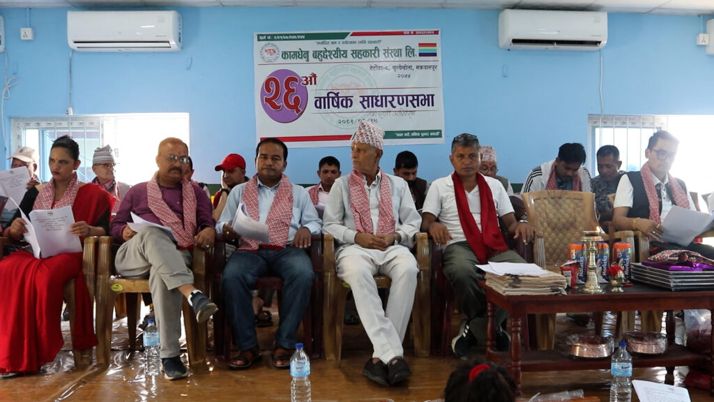 १९ असोज, हेटौँडा । हेटौंडा ६ चुच्चेखोला स्थित कामधेनु बहुउद्देश्यीय सहकारी संस्थाको २६ औं वार्षिक साधारण सभा तथा सातौं अधिवेशन शनिबार सम्पन्न भएको छ ।