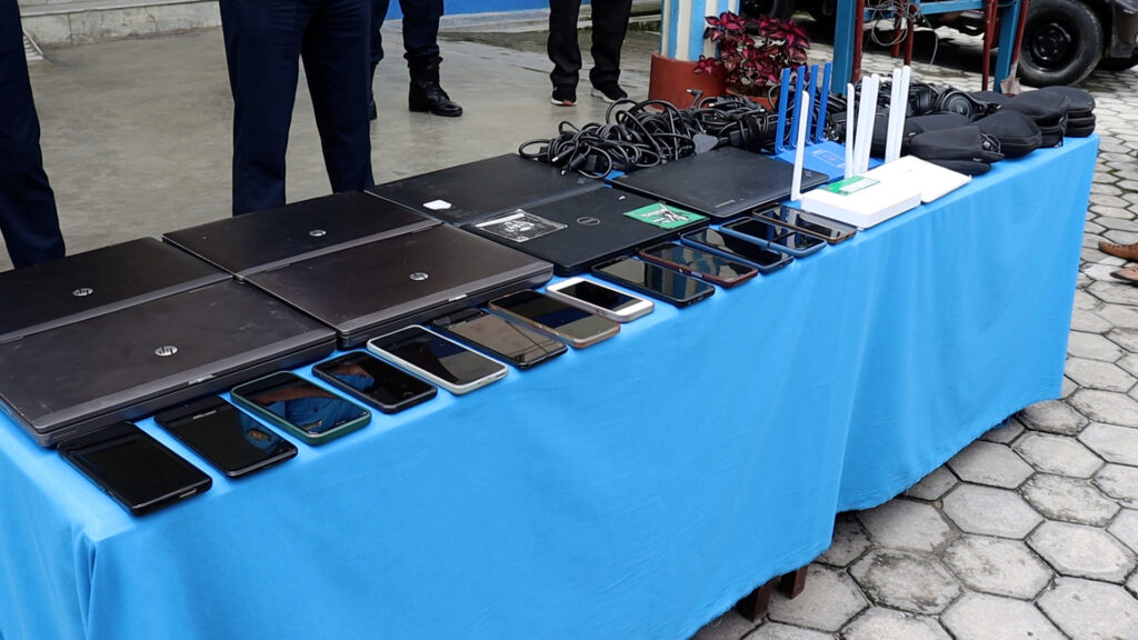 उनीहरूको साथबाट प्रहरीले विभिन्न कम्पनीका ल्यापटप ७ थान, ल्यापटकका चार्जर १८ थान, विभिन्न कम्पनीका मोबाइल १३ थान, राउटर ३ थान, हेडफोन ४ थान, मेडि असिष्ट लेखिएको स्ट्याम्प २ थान र एउटा वेब क्यामेरा बरामद गरिएको मकवानपुरका प्रहरी प्रहरी प्रमुख सीताराम रिजालले जानकारी दिनुभयो । भारत राँचीमा मेन सर्भर राखी Quick Call Client Software मार्फत् टार्गेट पहिचान गरि सोही सफ्टवेयर मार्फत् टार्गेट सँग सम्पर्क गरी सम्पूर्ण डिटेल भारत पठाउने गरेको अनुसन्धानबाट देखिएको प्रहरी प्रमुख रिजालले बताउनुभयो ।