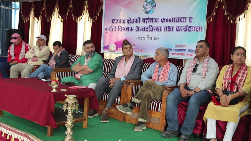 कार्यक्रममा पत्रकार सुनिल शिवाकोटी, जि न्यौपाने लगायतले सामाजिक संजालले पत्रकारितामा उब्जाएको समस्या, अवसर र वदलिदो समयमा र आर्थिक संकटमा देखा परेको चुनौतीको बारेमा मन्तव्य व्यक्त गर्नु भएको थियो । मकवानपुर शाखाका अध्यक्ष मणिराज गौतमको सभाध्यक्षतामा अन्तरक्रिया कार्यक्रम सम्पन्न भएको हो ।