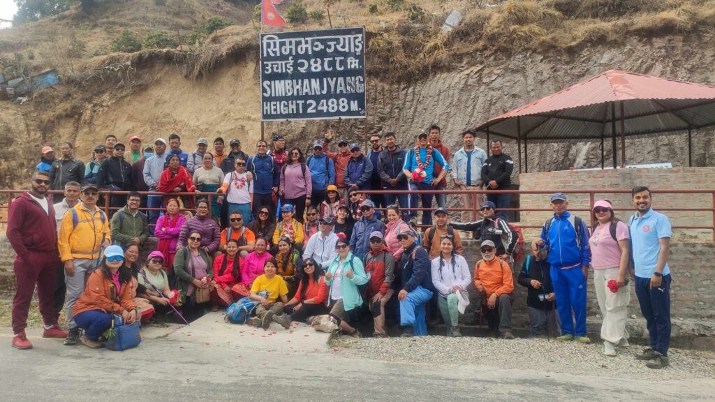 पदयात्रीहरुलाई सिमभञ्ज्याङमा स्थानीय होटल ब्यवशायीहरुले फूलमाला सहित चिया खुवाएर स्वागत गरेका थिए ।