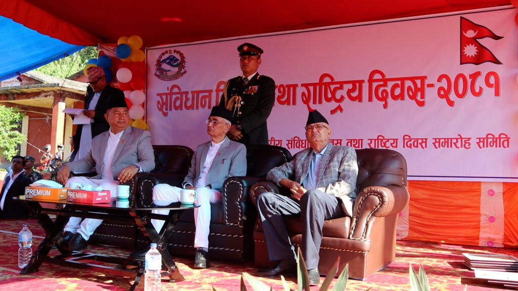कार्यक्रममा बोल्नुहुँदै प्रदेशका प्रथम मुख्यमन्त्री डोरमणि पौडेलले संविधानलाई असफल बनाउने तत्वहरु सल्बलाईरहेको बताउनुभयो । संविधानका निर्माणकर्ताहरु संविधानको संरक्षणमा एकजुट हुनुपर्नेमा उहाँले जोड दिनुभयो । केन्द्र सरकारले कानुनहरु बनाउन ढिलाई गर्दा संघीयता अझै पनि पूर्णरुपमा कार्यान्वयन हुन नसकेको उहाँले बताउनुभयो ।