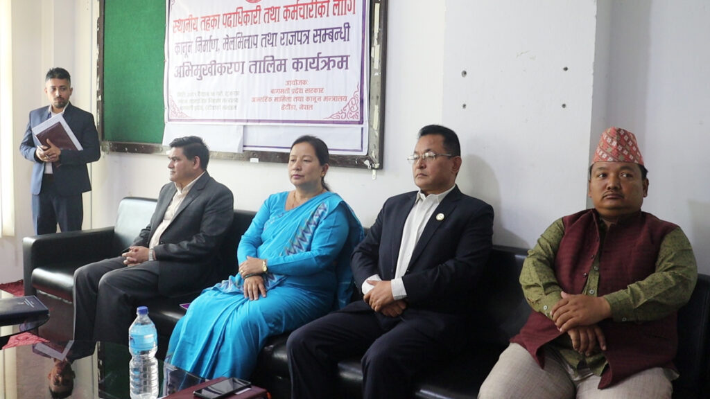 कार्यक्रममा प्रधानमन्त्री तथा मन्त्रिपरिषद्को कार्यालयका सहसचिव राजेन्द्र थापाले न्यायिक समिति, अधिकार क्षेत्र, अधिकार क्षेत्रको प्रयोग, कानून निर्माण प्रक्रिया, मेलमिलापमा न्यायिक समितिको भूमिका र उच्च अदालत पाटन हेटौँडा इजलासका न्यायाधिश यमुना भट्टराईले न्यायिक प्रक्रियाबारे प्रशिक्षण दिनुभएको थियो । आन्तरिक मामिला तथा कानून मन्त्रालयका सचिव पूर्ण बहादुर दर्जीको सभाध्यक्षतामा भएको कार्यक्रममा जिल्ला समन्वय समितिका प्रमुख ललित बहादुर घलान, हेटौंडा उपमहानगरपालिकाकी मेयर मीना कुमारी लामा लगायत चितवन र मकवानपुरका स्थानीय तहका प्रमुख, उपप्रमुखको उपस्थिती रहेको थियो ।