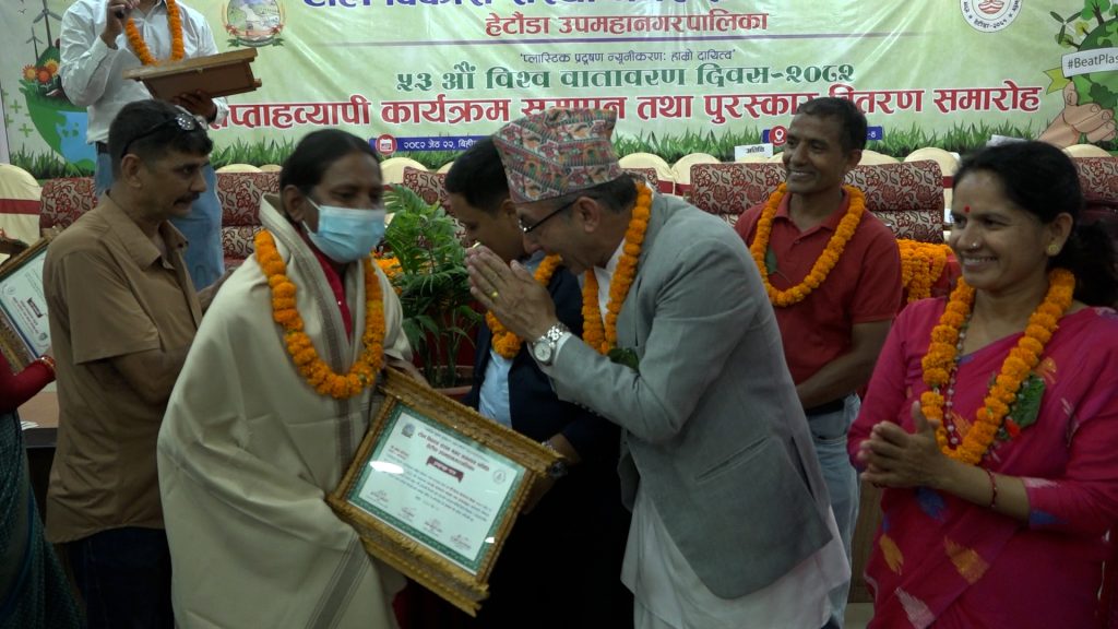 बिहिबार विश्व वातावरण दिवसको दिन वातावरणीय सचेतना मुलक बृहत ¥याली तथा पुरस्कार वितरण र सम्मान कार्यक्रम सम्पन्न भएको थियो । हेटौंडाका १९ वटै वडाहरुमा रहेका ३ सय ७६