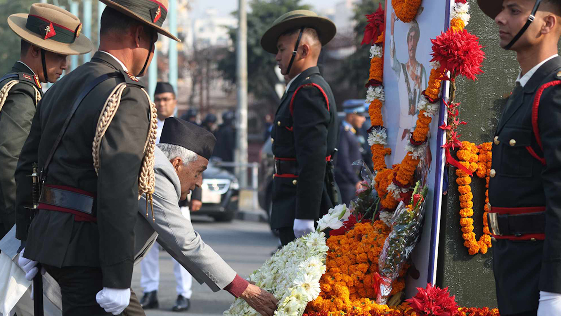 राष्ट्रपति पौडेलद्वारा पृथ्वीनारायण शाहको शालिकमा माल्यार्पण