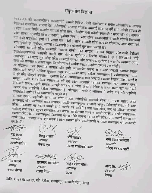 हेटौँडा अस्पताललाई प्रतिष्ठानसँग गाभ्न नहुनेमा ८ राजनीतिक दल एक मत
