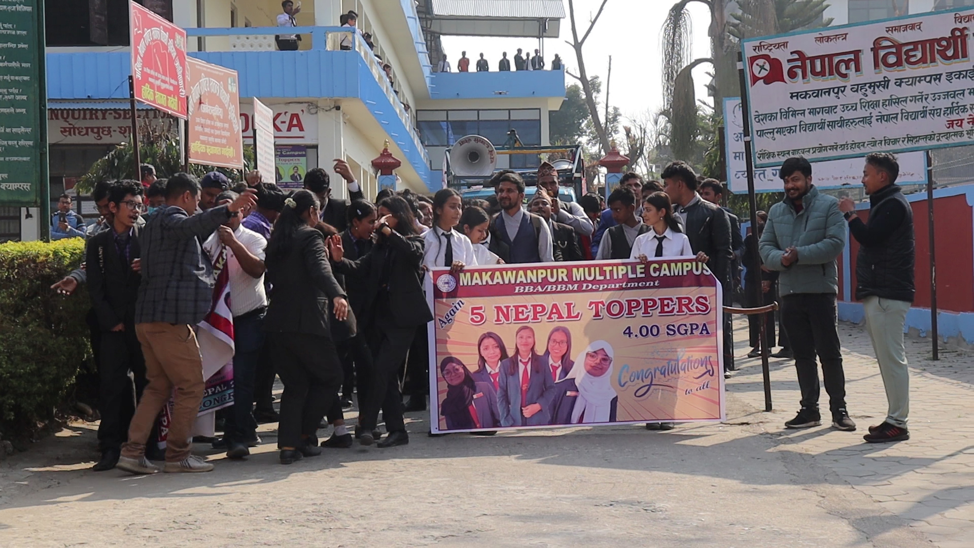 बिबिएमा उत्कृष्ट नतिजा ल्याएको खुशीयालीमा मकवानपुर बहुमुखी क्याम्पसले ¥याली निकाल्यो