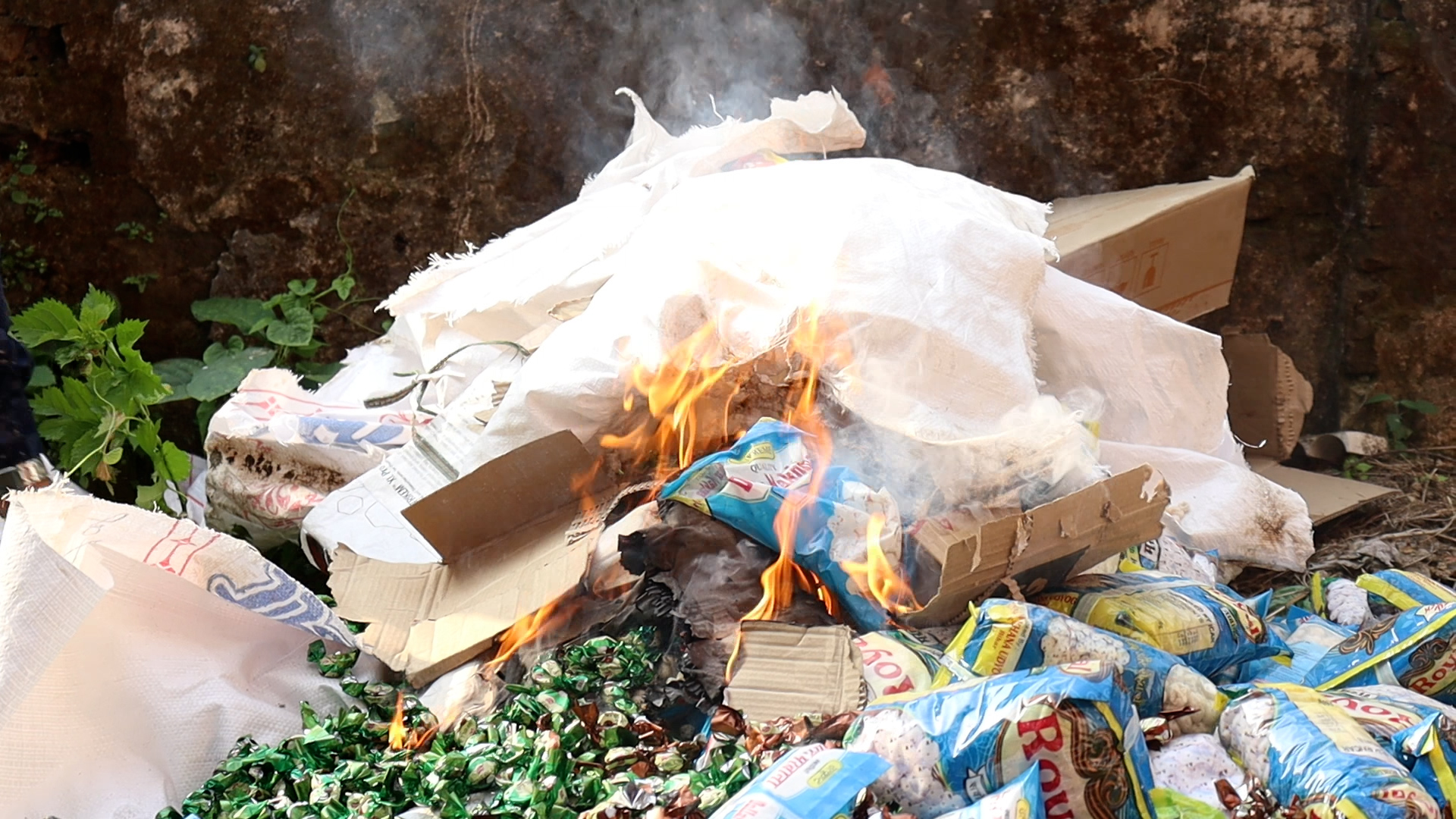 अनुगमनको क्रममा बरामद गरेका अखाद्य सामाग्री जलाएर नष्ट