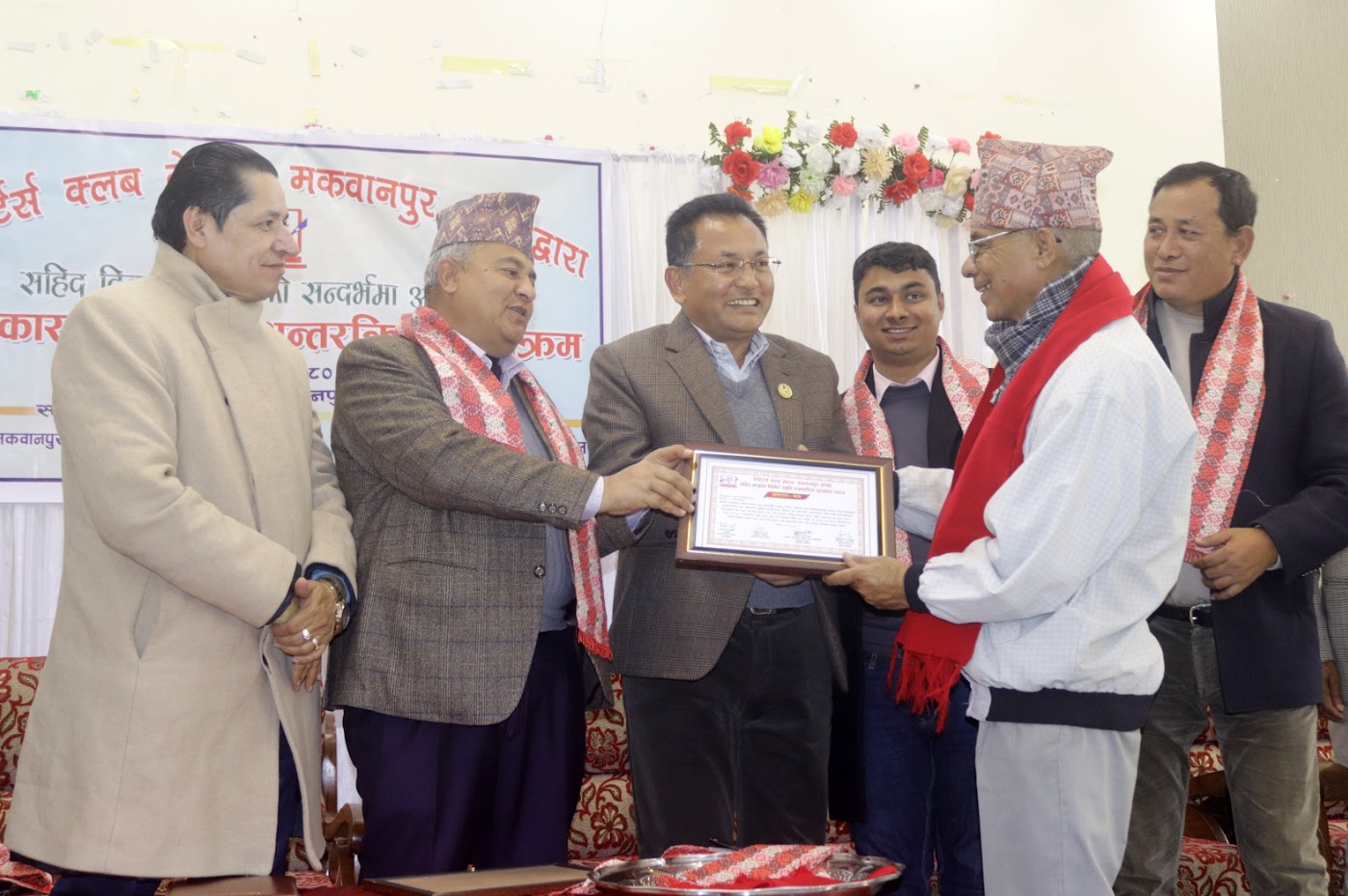 रिपोर्टर्स क्लब नेपाल मकवानपुरद्वारा दुई जना पत्रकार पुरस्कृत
