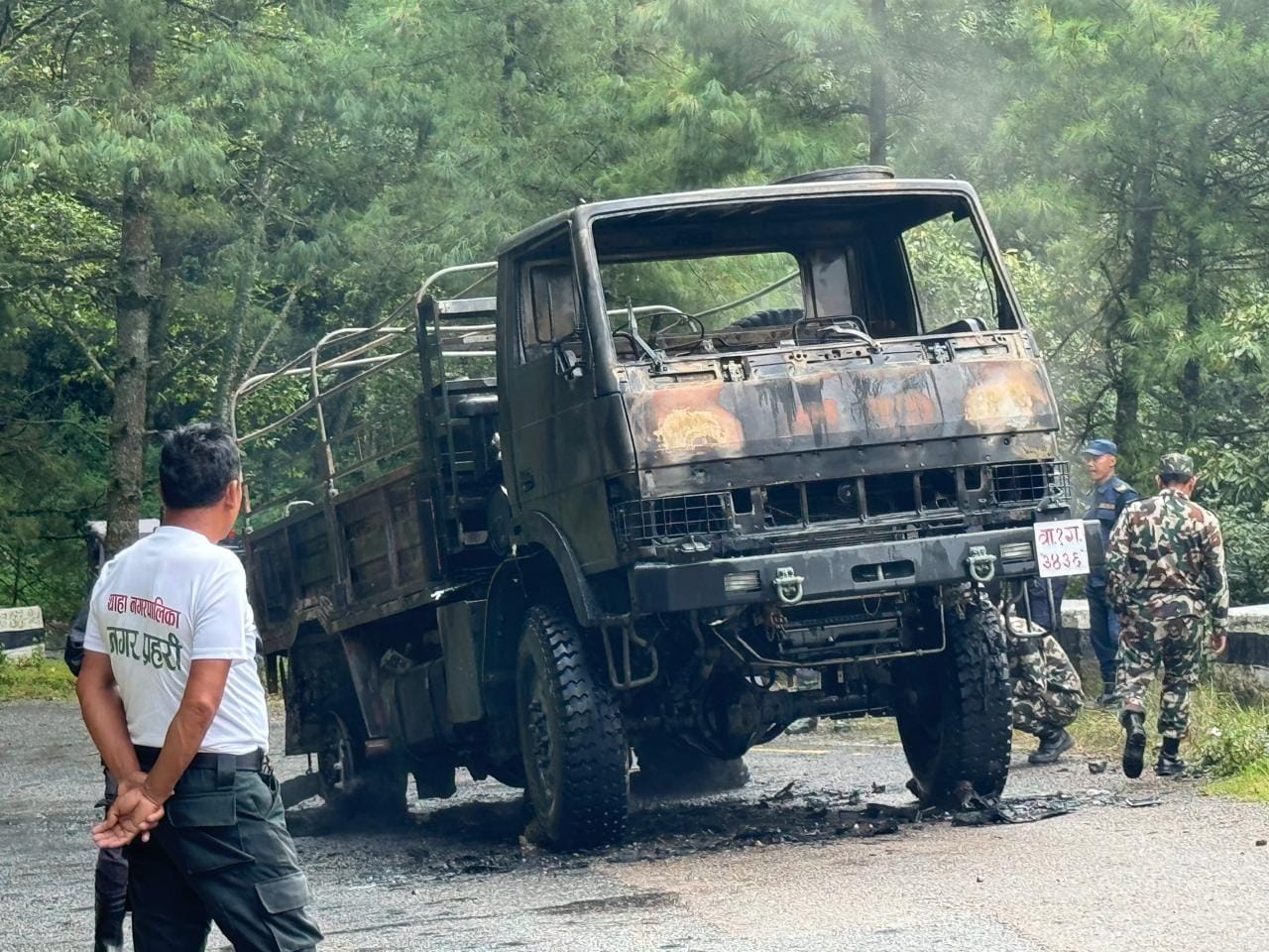 तालिमका लागि जाँदै गरेको नेपाली सेनाको ट्रकमा आगलागी