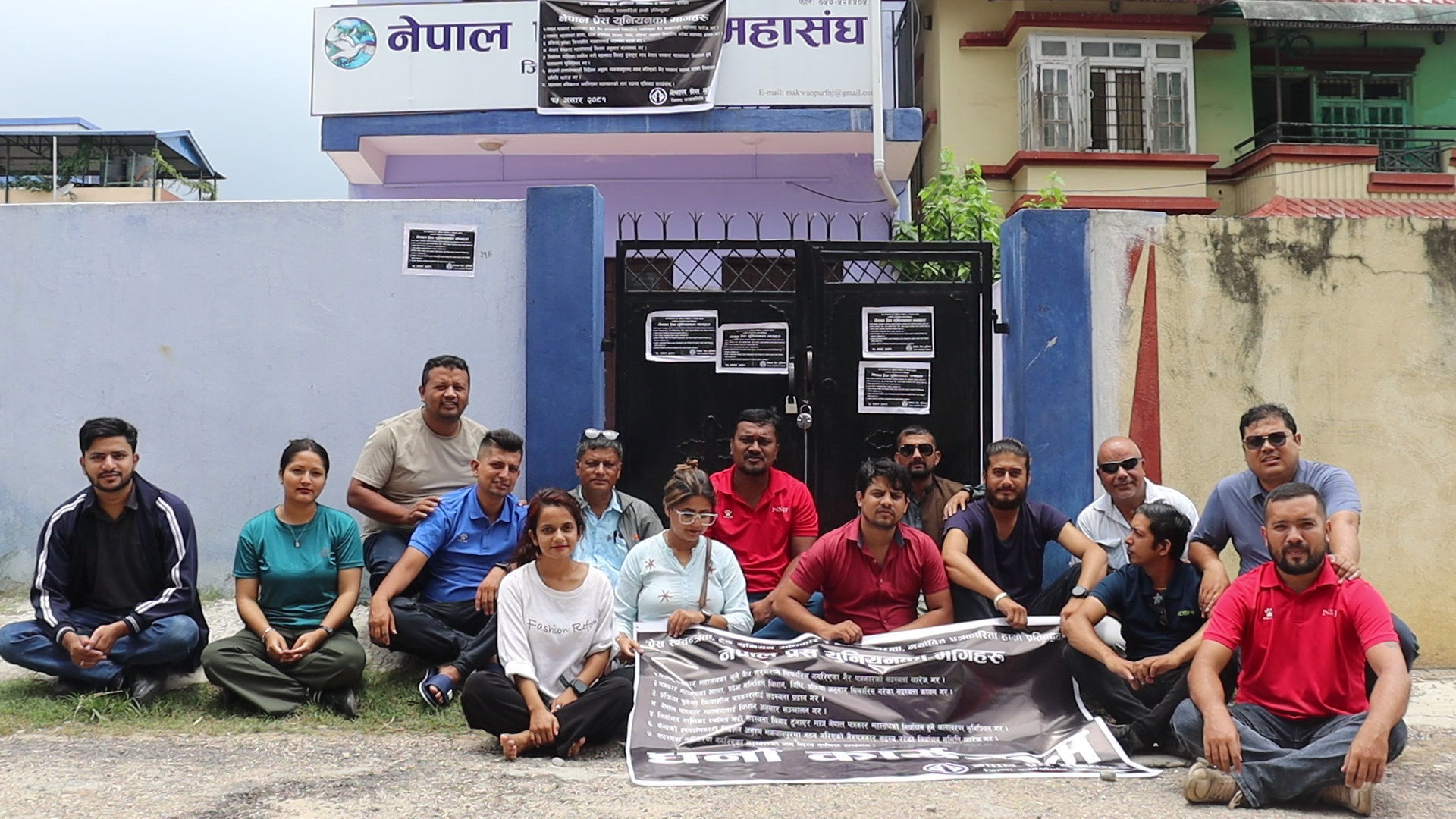 पत्रकार महासंघ मकवानपुरको कार्यालय परिसरमा प्रेस युनियन मकवानपुरको धर्ना