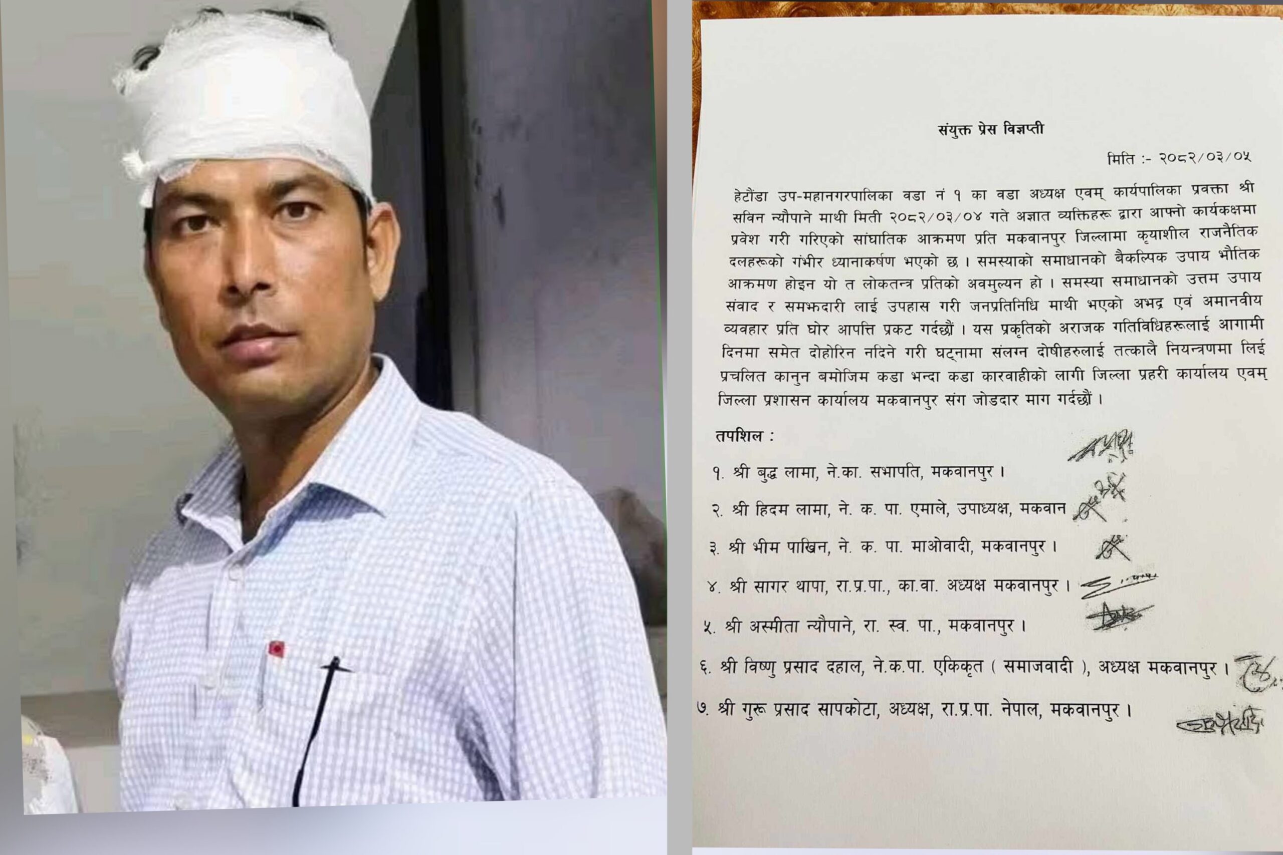 वडा अध्यक्ष न्यौपानेमाथिको आक्रमणप्रति सात प्रमुख दलको संयुक्त विरोध